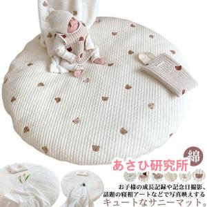 サニーマット ベビー ラグ マット 円形 ごろ寝 寝相アート 月齢フォト マット 綿 赤ちゃん お昼寝マット 刺繍 クマ 花柄 ウサギ リス オリーブ