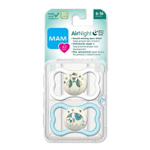 【クーポンあり】MAM おしゃぶり 夜光 蓄光 ケース付き 生後6カ月以上向け 2個セット 青 白 ブルー 水色 ホワイト