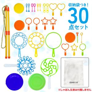 シャボン玉 吹き棒 30点入 セット 収納袋付 受け皿 手動道具 棒状 リング スティック 受け皿 おもちゃ ステッキ 公園 外遊び