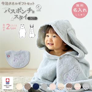 ベビー バスローブ & スタイ セット 出産祝い 今治 タオル 名入れ 刺繍 フード ポンチョ くま うさぎ ベア よだれかけ ギフト お名前 日本製 お祝い emoka