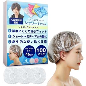 シャワーキャップ ヘアキャップ 人気カリスマ美容師監修 ラージサイズ 100枚入り(ホワイト, レギュラーサイズ(46cm))