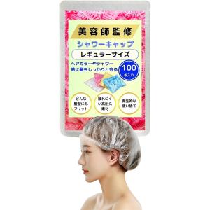 シャワーキャップ ヘアキャップ 人気カリスマ美容師監修 ラージサイズ 100枚入り 髪染め用(ピンク, レギュラーサイズ(46cm))