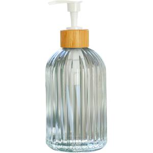 ソープボトル 大容量 ソープディスペンサー おしゃれ 詰め替え ガラス 液体 洗剤 ポンプ(ホワイヘッド透明, 400ミリリットル)