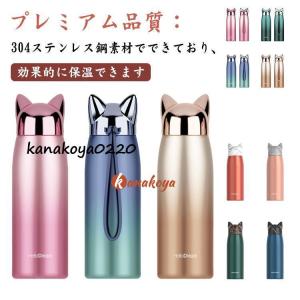 ステンレスボトル 保冷 魔法瓶 猫耳 300ml 可愛い お洒落 保温 水筒 ステンレス製 直飲み 大人 マグボトル ねこ耳 真空
