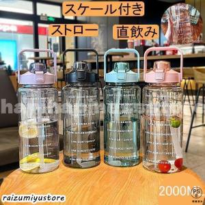 水筒 目盛り付き ボトル 2L ウォーターボトル 2リットル タイムマーカー ストロー付き 携帯便利 漏れ防止 高い密封性 子供 透明 目盛り 大容量