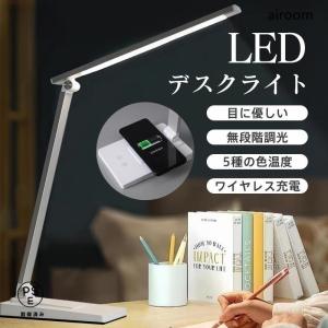 デスクライト 卓上ライト led 目に優しい USB給電 電気スタンド 折り畳み式 5段調色 無段階調光 ワイヤレス充電 読書灯 省エネ テレワーク