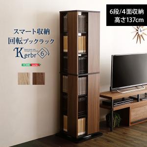コミックラック 回転 6段 ブックラック Kerbr ケルブル ディスプレイラック 本棚 おしゃれ 木目調 ヴィンテージ おしゃれ 大容量 薄型 北欧 代引不可