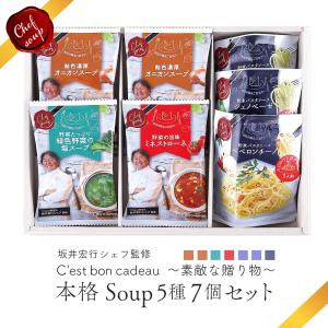 坂井宏行シェフ監修 Cest bon cadeau 〜素敵な贈り物〜(SKIB-B) お祝い プチギフト 手土産 内祝い ドライスープ パスタソース 5種7個入り 包装