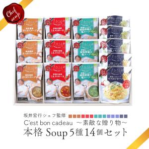 坂井宏行シェフ監修 Cest bon cadeau 〜素敵な贈り物〜(SKIB-E) お祝い プチギフト 手土産 内祝い ドライスープ パスタソース 5種14個入り 包装