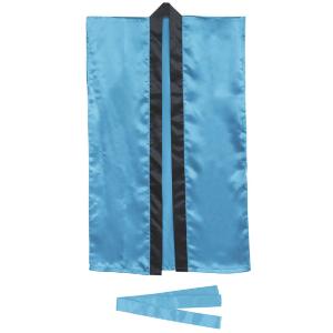 サテンロングハッピ黒 青襟 L ハチマキ付 ハッピ 衣装 運動会 発表会 イベント