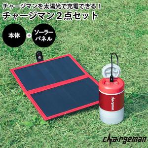 チャージマン2点セット (チャージマン レッド + ソーラーパネル) 防災 LEDライト付 モバイルバッテリー /海外× 爆買