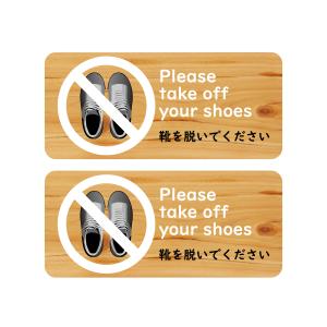 靴を脱いでください ステッカー 木目 木調 2枚 靴 土足 土足禁止 土足厳禁 立ち入り禁止 禁止 入らないで