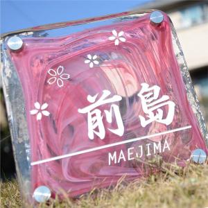 ギフト プレゼント 名入れ 表札 津軽びいどろガラス表札 ピンク 着色1色 人気の表札 爆買