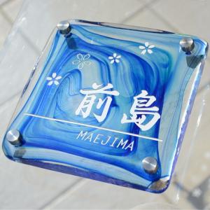 ギフト プレゼント 名入れ 表札 津軽びいどろガラス表札 ブルー 着色1色 人気の表札 爆買