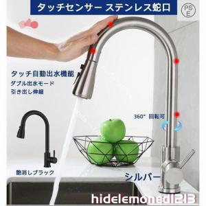 冷熱混合水栓 タッチ自動出水機能 キッチン蛇口 タッチセンサー 野菜食器シンク 引き出し伸縮360°回転 家庭業務兼用