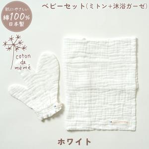 coton de meme ベビーセット ホワイト ミトン 沐浴ガーゼ コトンドメメ 綿100% 鹿児島睦 かごしままこと 医療用ガーゼ 3重ガーゼ 天然植物染料 ボタニカルダイ