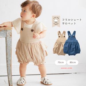 ベビー服 男の子 女の子 綿100% フリルショート サロペット ベーシック シンプル ベージュ デニム ネイビー 70 80