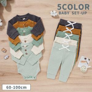 セットアップ 上下セット ベビー服 赤ちゃん 新生児 キッズ 子供服 ロンパース ボディースーツ ロングパンツ 長ズボン 股開き スナップボタン 無地