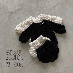 セットアップ ベビー 赤ちゃん キッズ 子供服 ブラウス 長袖 ブルマー ブルマパンツ ポコポコ ポップコーン 無地 単色 シンプル おしゃれ かわい