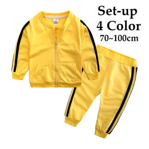 セットアップ 子供服 ベビー キッズ 2点セット サイドライン 男の子 女の子 長袖 袖リブ トップス ファスナー 長ズボン 上下セット ジャージ 春