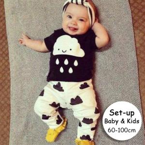 セットアップ 2点セット 子供服 ベビー キッズ 女の子 男の子 Tシャツ 半袖 長ズボン ラウンドネック おしゃれ 上下セット 雲 プリント柄 モノ