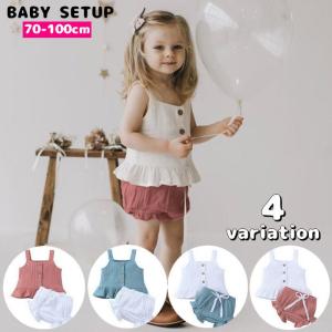 セットアップ 上下セット 子供服 ベビー キッズ 赤ちゃん 赤ん坊 キャミソール ブルマパンツ 2点セット かぼちゃパンツ 裾フリル ハーフボタン 女