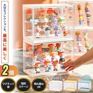 マグネット式 コレクションケース 2個セット 全3色カラー アクリルケース カバー付き 透明 クリア ディスプレイボックス フィギュアケース 収納ボックス 扉付き