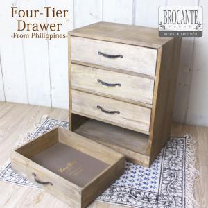 (要在庫確認) 書類ケース 収納ボックス 木製・4段引き出し 木製 おしゃれ アジアン ナチュラル ブロカンテ