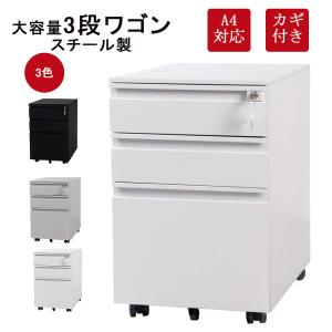 デスクワゴン サイドワゴン 3段 A4 鍵付き 大容量 転落防止 キャスター付き ワゴン ファイル オフィス スチール 収納 事務机 キャビ