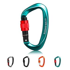 D.E. カラビナ 超軽量 高強度 CE認証 大 25KN / 小 16KN アルミ Dリング 型 ロック 付き 登山 釦 アウトドア ハンモッ