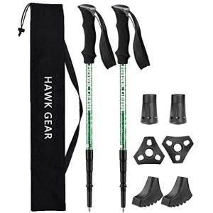 HAWK GEAR (ホークギア) 登山ストック トレッキングポール 軽量 2本セット アンチショック機能付 (Newメタルグリーン)