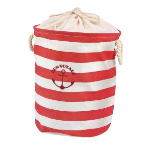 ランドリーバスケット /洗濯物入れ 〔ラウンド型 マリン ボーダー〕 レッド 布/ファブリック製 16-620【メーカー直送】