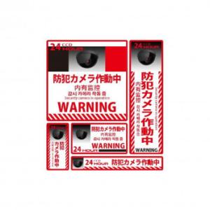 防犯ステッカー5枚セット (英語・中国語・韓国語対応) 24時間赤黒(防犯カメラ作動中) SS-003