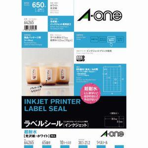 【メール便選択可】エーワン 64265 ラベルシール 超耐水 表示 パッケージラベル インクジェット 光沢紙 白 A4 65面 1袋 10シート入