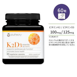 ユーセオリー ビタミンK2 100mcg + ビタミンD3 125mcg 60粒 ベジカプセル youtheory Vitamin K2 D3 Capsule ボーンヘルス 健骨サポート 体づくり お取り寄せ