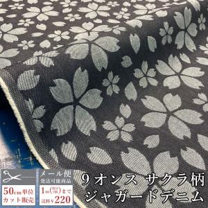 デニム生地 ジャガード織り 桜 サクラ柄 和柄 レトロ 昭和 薄手 9オンス バッグ 雑貨 日本製 岡山
