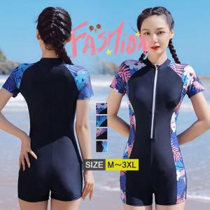フィットネス水着 オールインワン ジップ パット付き 競泳 スイムウェア 女性用 半袖 ビーチ サーフィン 水泳 体型カバー スイミング プール