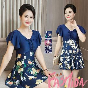 水着 レディース ワンピース 体型カバー 大きいサイズ オールインワン 20代 30代 ママ フレア花柄