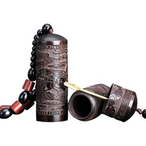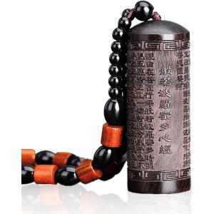 塗香入れ お香入れ 携帯用 薬さじ付き 黒檀 お香ケース 彫刻 般若心経 コンパクト 香粉入れ 護摩祈祷 檀香(ダークブラウン, 小)
