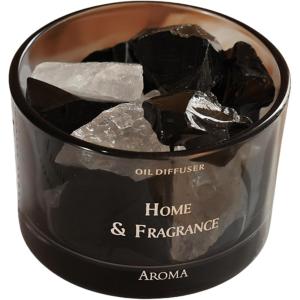 アロマストーン ストーンディフューザー アロマディフューザー クリスタルストーン付き ガラス製(ブラック, 高さ5cm、横7cm)