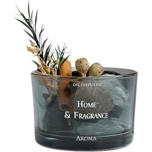 アロマストーン ストーンディフューザー アロマディフューザー クリスタルストーン付き ガラス製(オレンジ, 高さ5cm、横7cm)