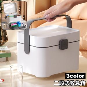 救急箱 薬入れ 薬ケース ファーストエイドボックス 2層 2段 持ち手付き ロック付き 大容量 たっぷり 常備薬 箱 整理整頓 収納 小物入れ シンプ