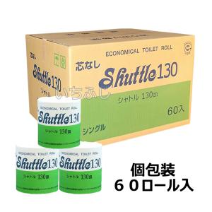 トイレットペーパー TR芯なしシャトル 1ロール個包装 シングル130m 1ケース60ロール入