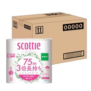 ケース販売 スコッティ フラワーパック 3倍長持ち トイレット4ロール 75mダブル 無香料 ×12パック入り