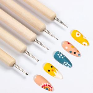 送料無料 ネイルドットペン 5本セット 水玉 ネイルパーツ ネイルアートペン ネイルチップ ネイル ジェル スカルプ ドットペン 水玉模様 小花柄 マ