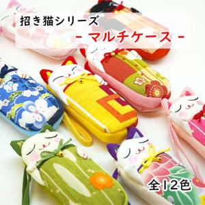 ペンケース 筆箱 おしゃれ 招き猫 マルチケース 12色 ねこ ネコ 可愛い 和風 キャラクター 眼鏡ケース メガネケース 小物入れ 筆箱 ちりめん細工館
