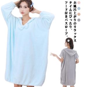 プルオーバー 湯上りタオル ワンピース 湯上り ワンピース バスローブ タオルワンピ 可愛い 海水浴 フード付き マイクロファイバー リボン パジャ