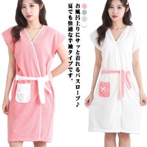半袖 ガウン バスローブ お風呂上り マイクロファイバー 速乾 吸水 ルームウェア ナイトウェア コンパクト 部屋着 レディース タオルポンチョ ふ