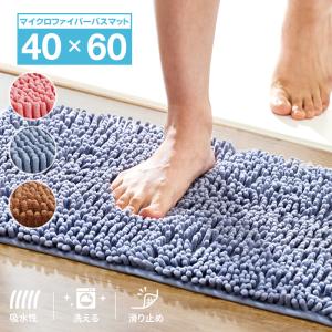 バスマット ふわふわ お風呂マット ふかふか 吸水 速乾 乾きやすい ブルー/ピンク/ブラウン 約40×60cm マイクロファイバー