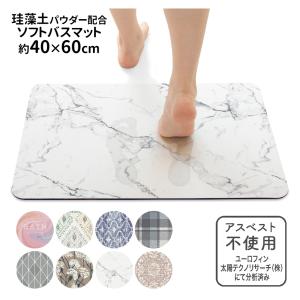 送料無料 珪藻土 ソフトバスマット 柔らかい 風呂マット 拭ける 足拭きマット 滑り止め 足 速 乾 吸水 40×60cm デザイン 大理石 マーブル おしゃれ